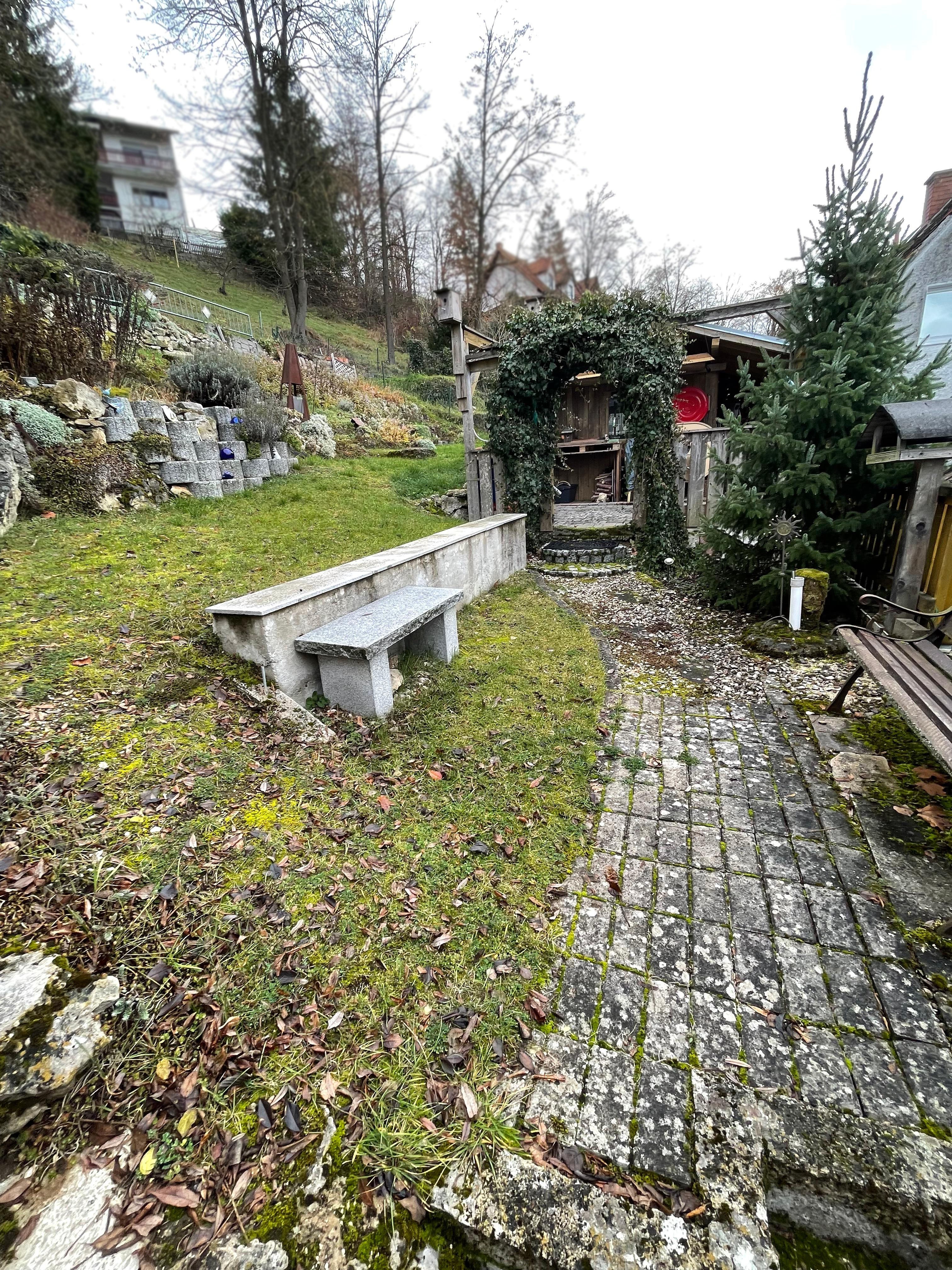 Auch der Außenbereich weiß mit einem gemütlichen Gartenhaus und Sitzmöglichkeiten zu überzeugen. Einem entspannten Abend mit tollem Blick über die Dächer Beratzhausens steht nichts im Weg.