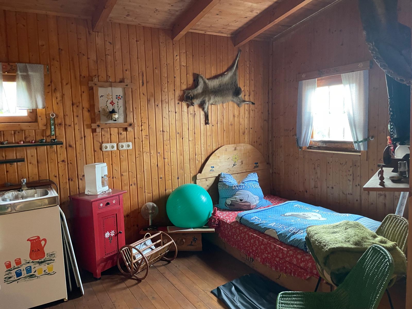 Auch im Außenbereich eröffnen sich dank des in etwa 600 m² großen, uneinsehbaren Gartens auf der Südseite inklusive einer rustikalen Holzblockhütte unbegrenzte Möglichkeiten für ein gemütliches Beisammensein im Grünen oder erholsame Stunden in der Natur.