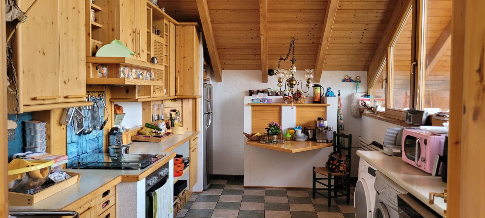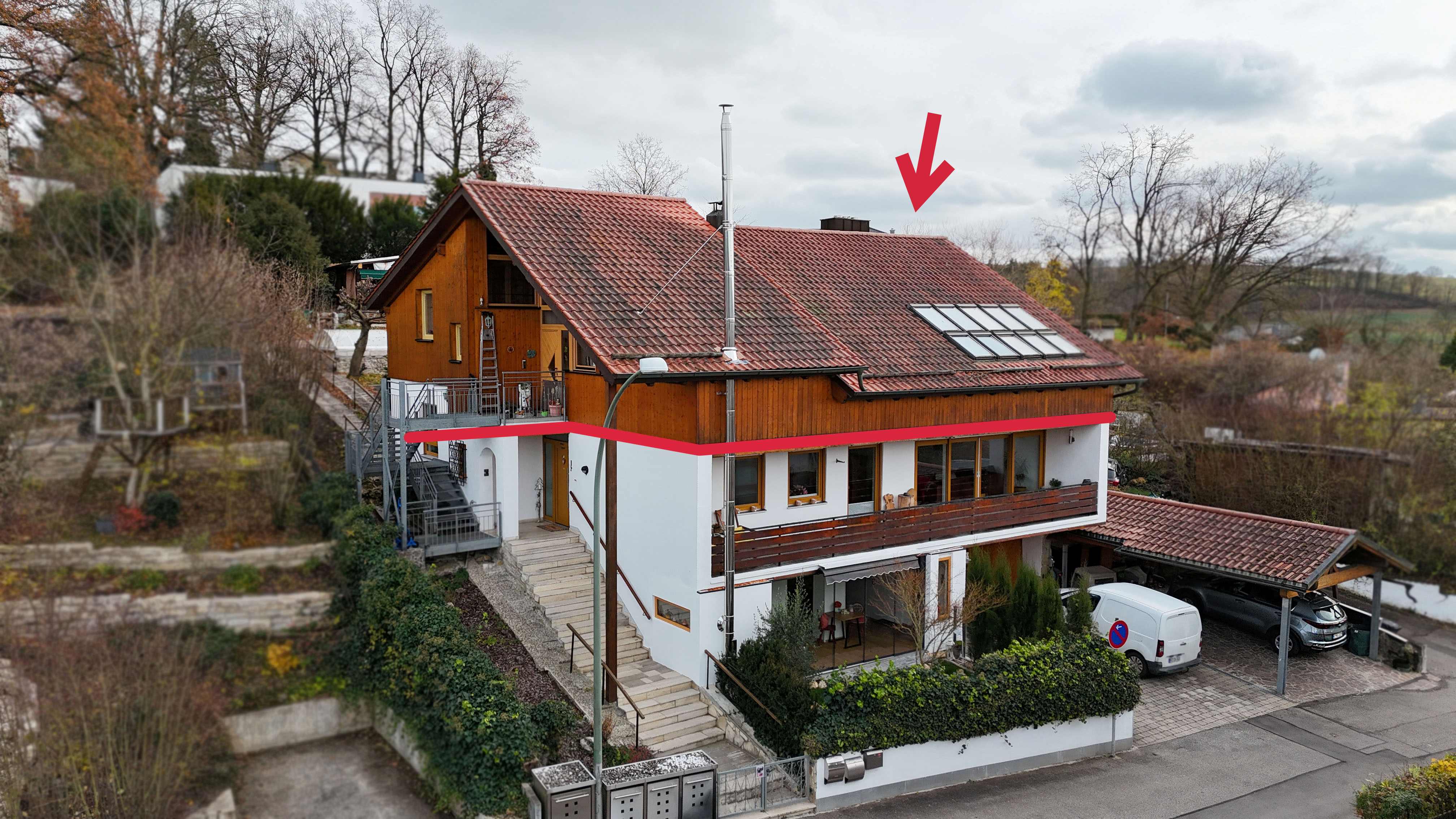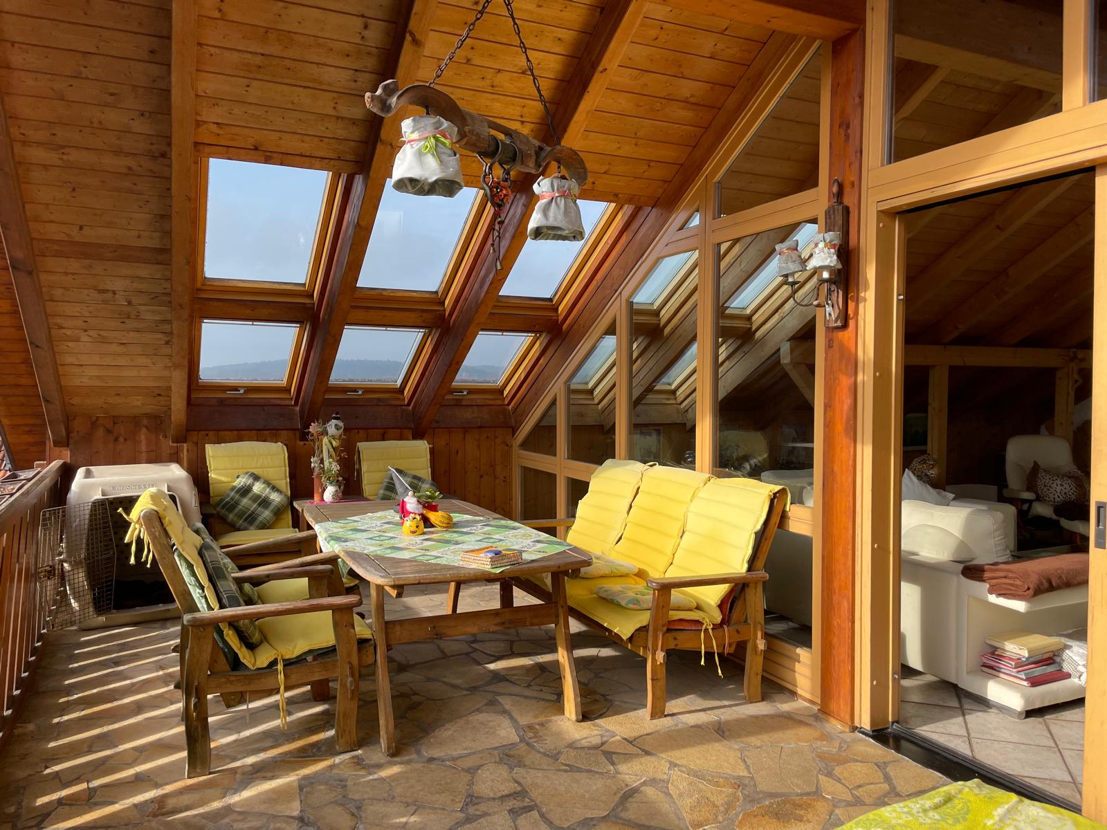 Dieses charmante Loft aus dem Jahr 1997 sucht neue Eigentümer. Auf 116 m² Wohnfläche sowie einem zusätzlich teilausgebauten Dachstudio mit rund 40 m² bietet es den Neuerwerbern ausreichend Platz. Das Herzstück der Immobilie ist der helle Wohn-Essbereich, welcher mit einer angrenzenden nach Westen ausgerichteten Loggia und einem uneingeschränkten Blick bis nach Regensburg überzeugt. Die angrenzende Vollholzküche, die mit einem Kohleherd ausgestattet ist, unterstreicht den warmen und herzlichen Gesamteindruck der Wohnung.Das an das Schlafzimmer angrenzende Studio, welches einen direkten Zugang zum 4x10 m großen, beheizten Außenpool bietet, lässt sich mit geringem Aufwand flexibel umgestalten und eröffnet eine Vielzahl an Nutzungsmöglichkeiten entweder als Büro oder weiteres Schlafzimmer. Auch über das sehr geräumige Badezimmer, welches mit einer Badewanne und Dusche ausgestattet ist, ist der Pool, welcher über Solarpanele beheizt wird, zugänglich. Zusätzlich gibt es eine Galerie mit etwa 7–8 m², die den Wohnbereich harmonisch ergänzt und vielfältige Nutzungsmöglichkeiten bietet.