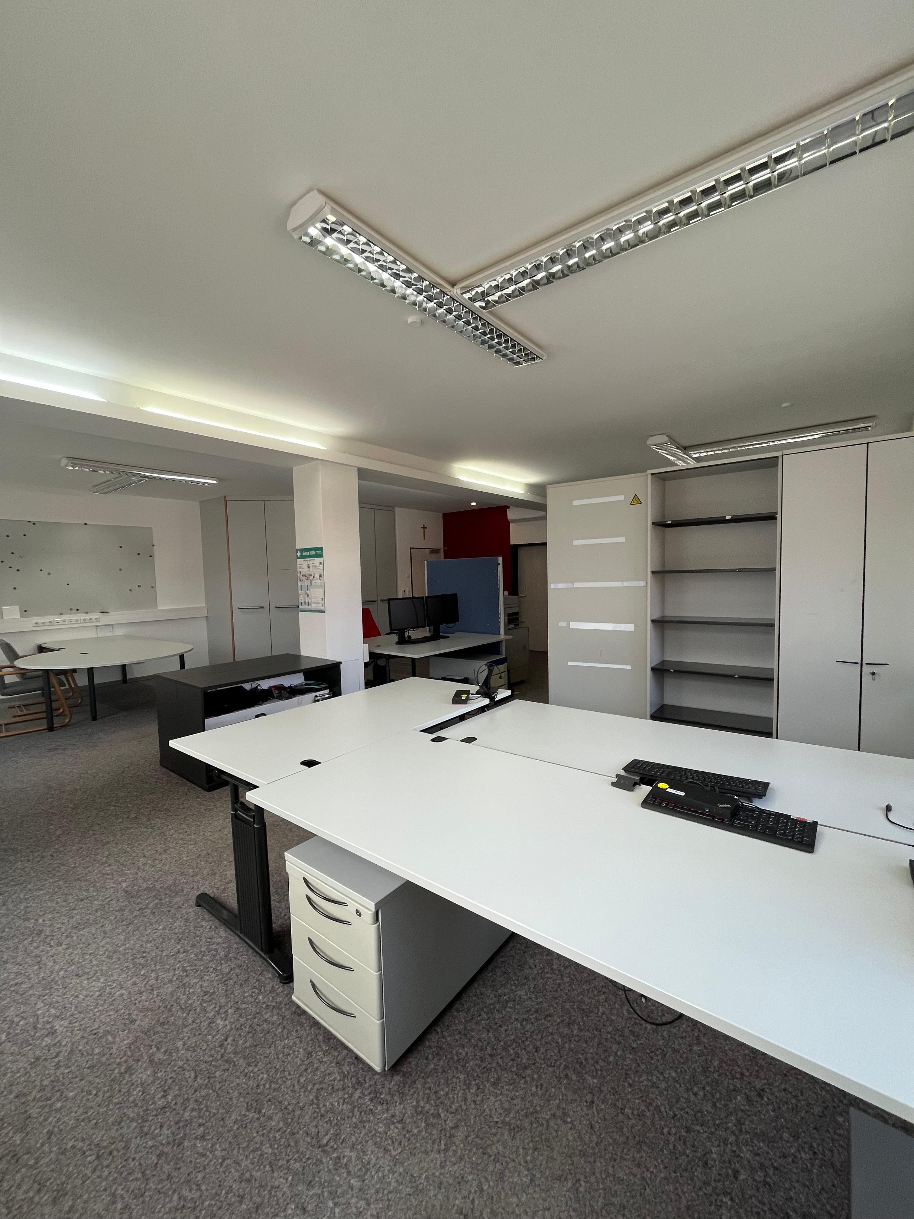 Es könnten die vorhandenen Büromöbel übernommen werden. Besteht hier kein Bedarf, werden die Räume geräumt. Ein großer Einbauschrank mit Schüben ist vorhanden.