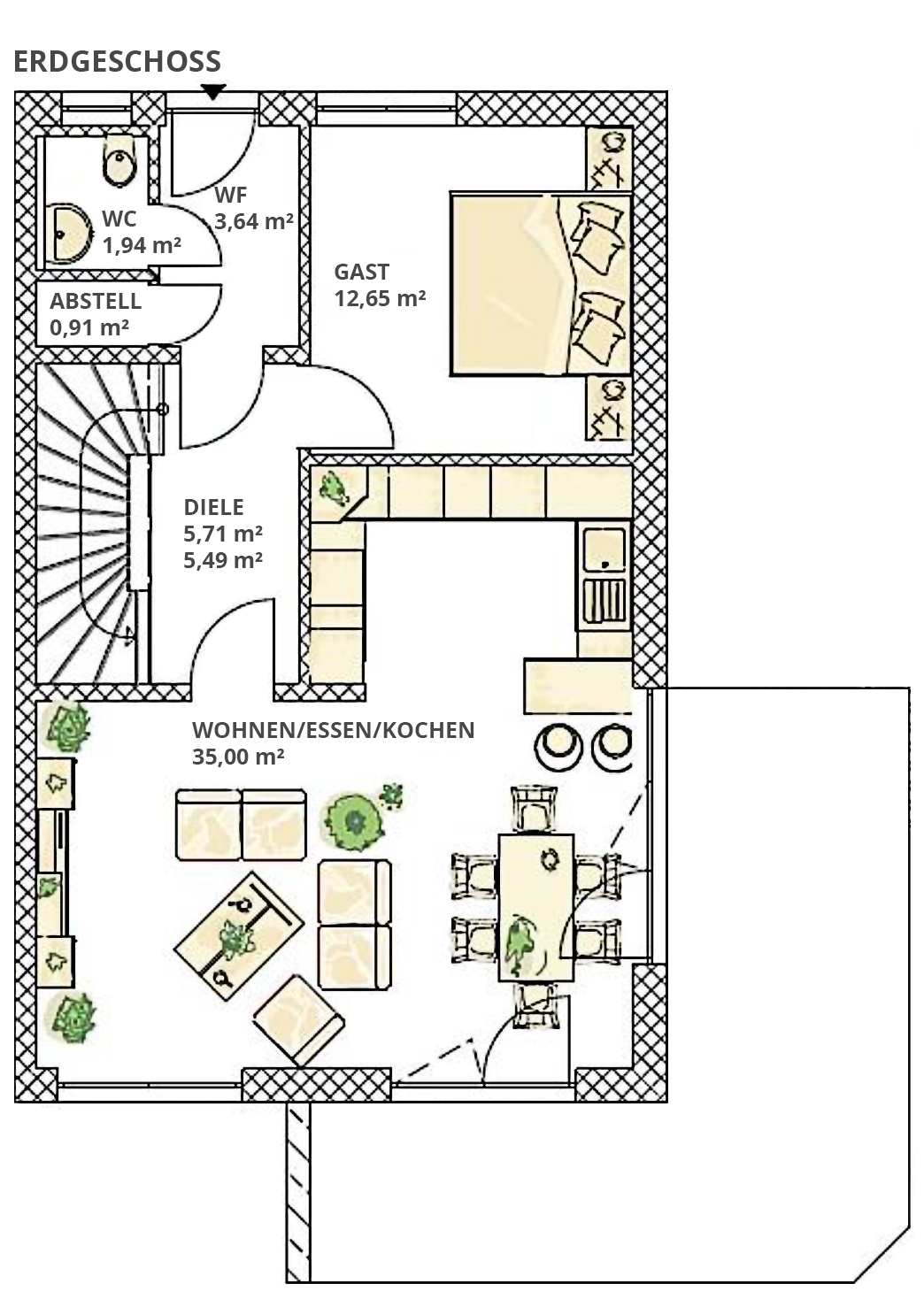 Im Kaufpreis ist der gepflasterte Stellplatz, die Einzelgarage und die Terrasse enthalten.