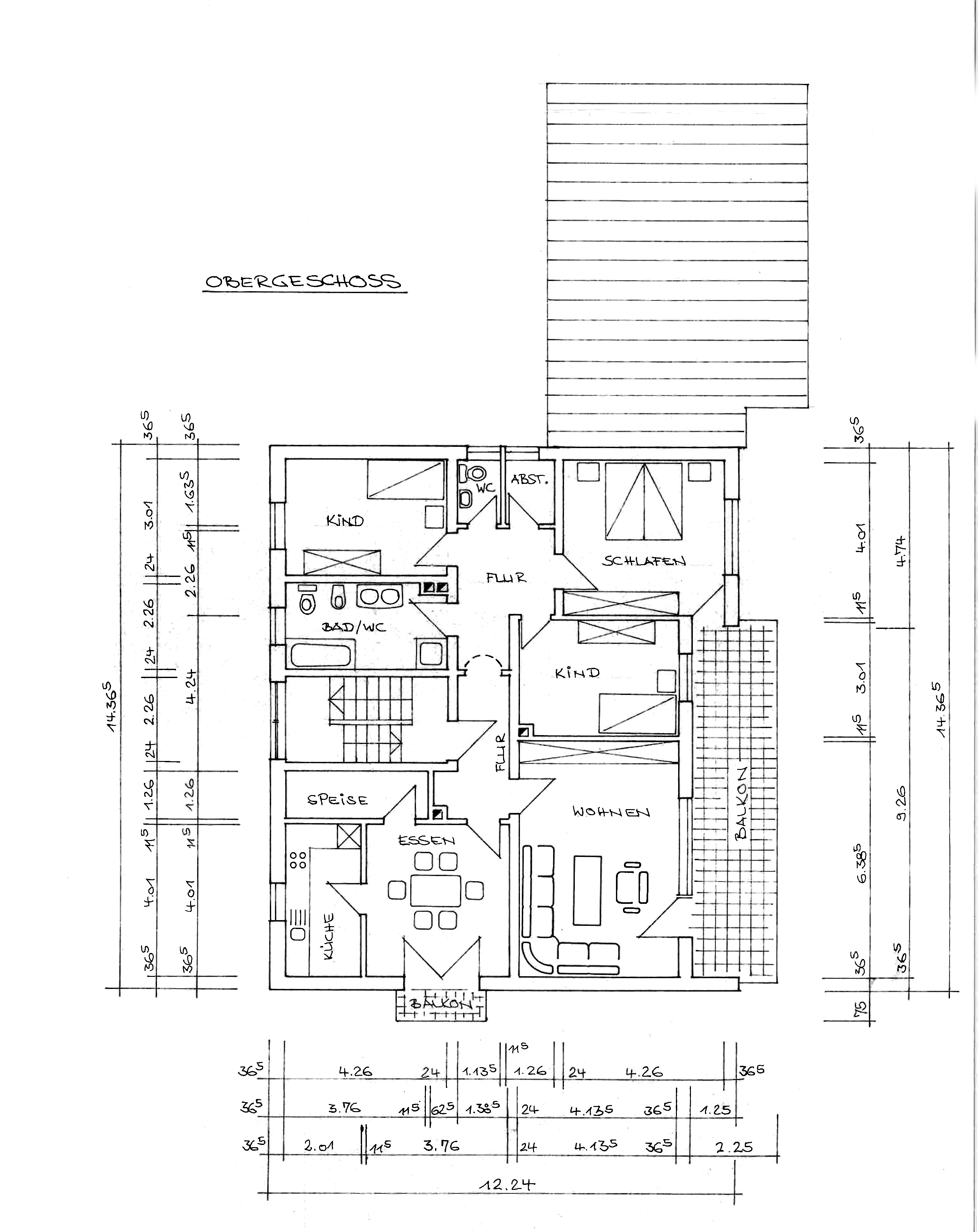 Jede der beiden Wohnungen setzt sich dabei aus einem Elternschlafzimmer, 2 Kinderzimmern, einer Küche, sowie einem Bad mit Wanne, Dusche und Fenster und einem zusätzlichen Gäste WC zusammen. Abgerundet werden die beiden Etagen von einem Wohnzimmer mit jeweiligen Zugang zu einem Südbalkon mit Blick ins Grüne.