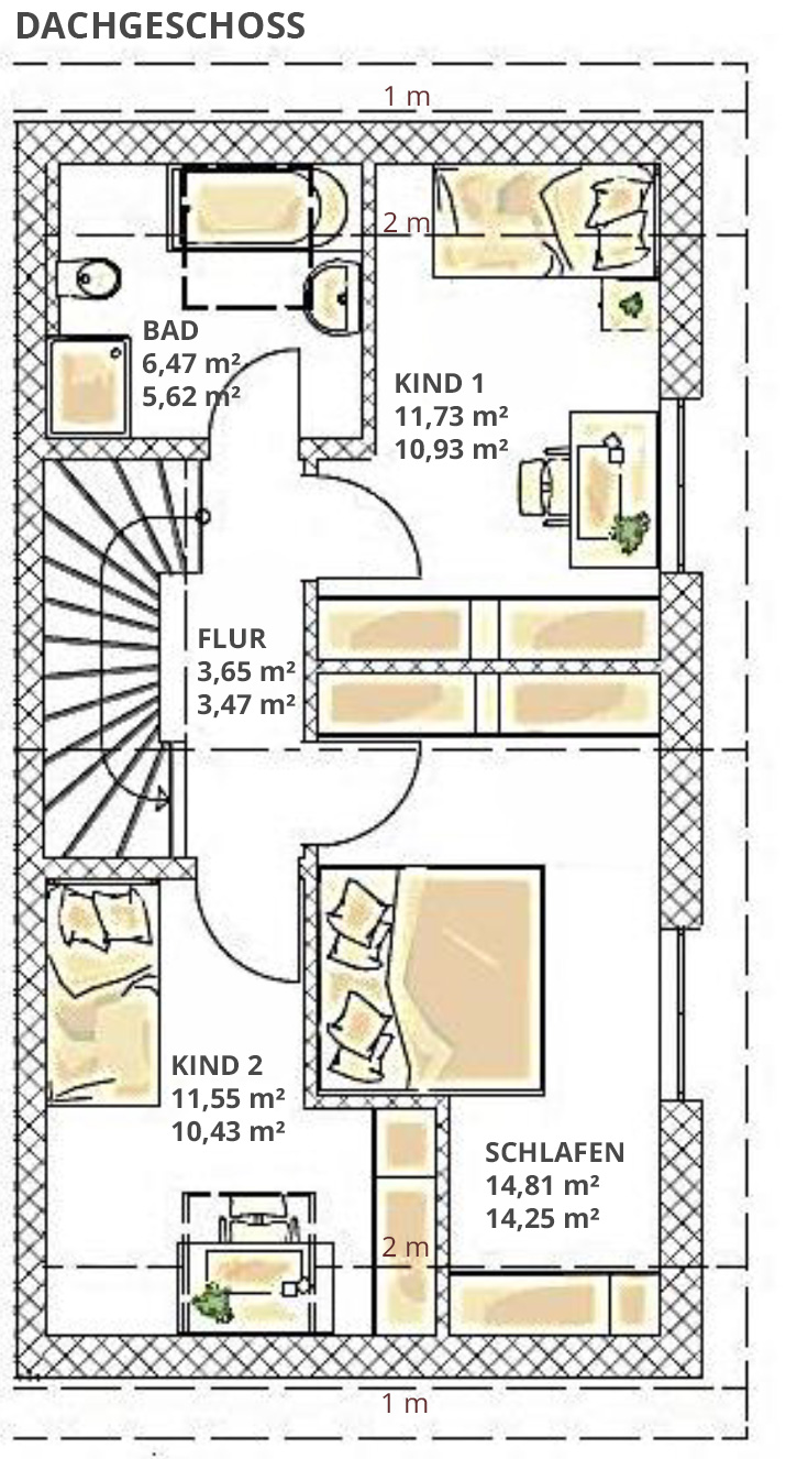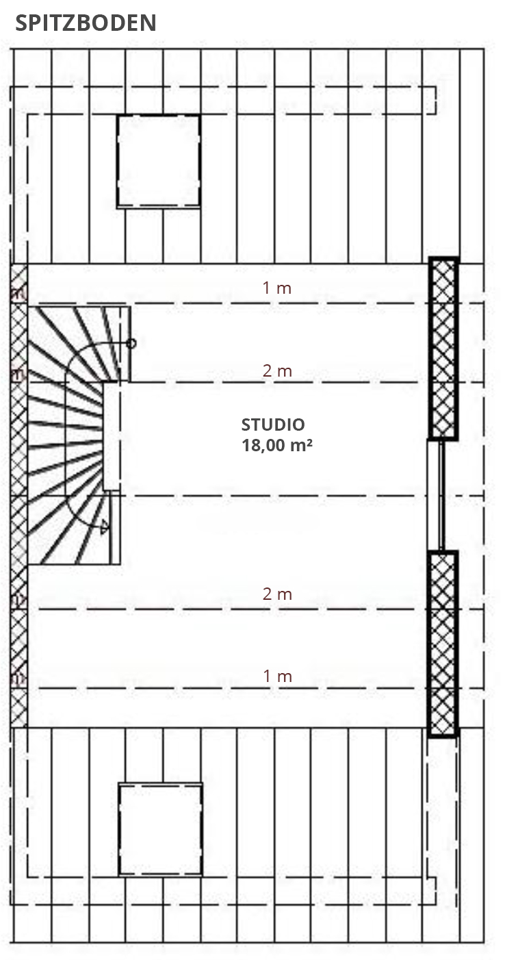 Im Dachgeschoss erwarten Sie drei Schlafzimmer und ein modernes Bad mit Dachfenster. Das absolute Highlight der Immobilie ist das ca. 18 m² große Studio mit Sichtdachstuhl. Dieses kann individuell als zusätzliche Abstellfläche, Büro oder als Gästezimmer genutzt werden.
