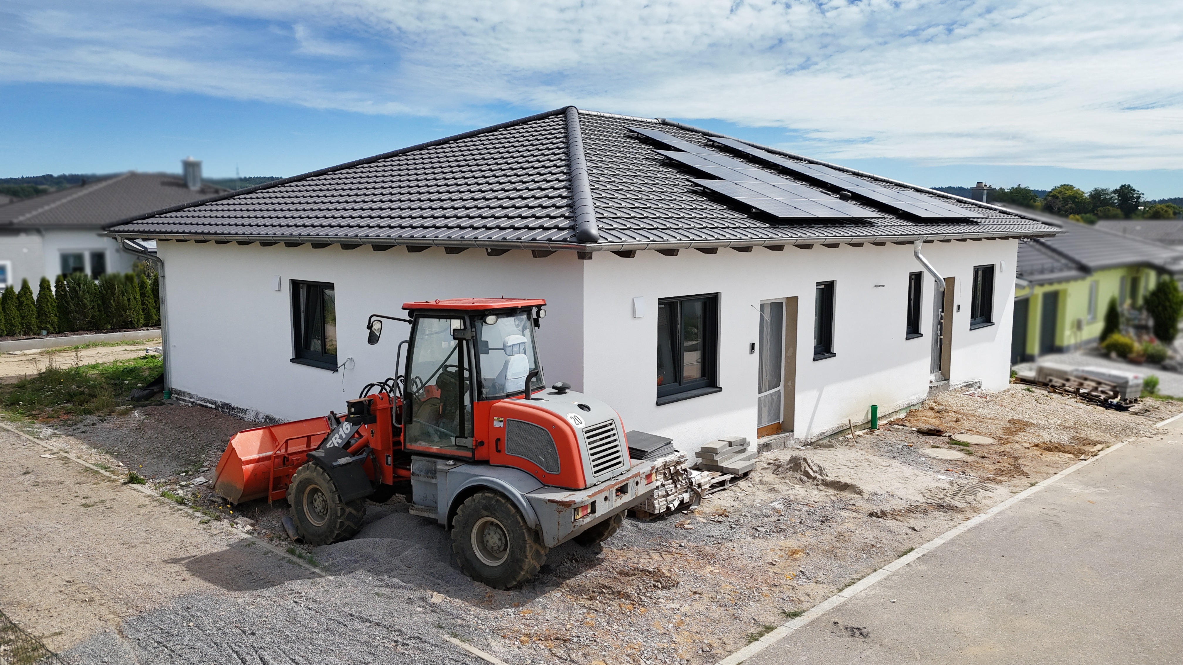 Zum Preis von 390.000 € kommen noch 40.000 € für die PV-Anlage, das Carport und die komplett fertige Außenanlage hinzu.