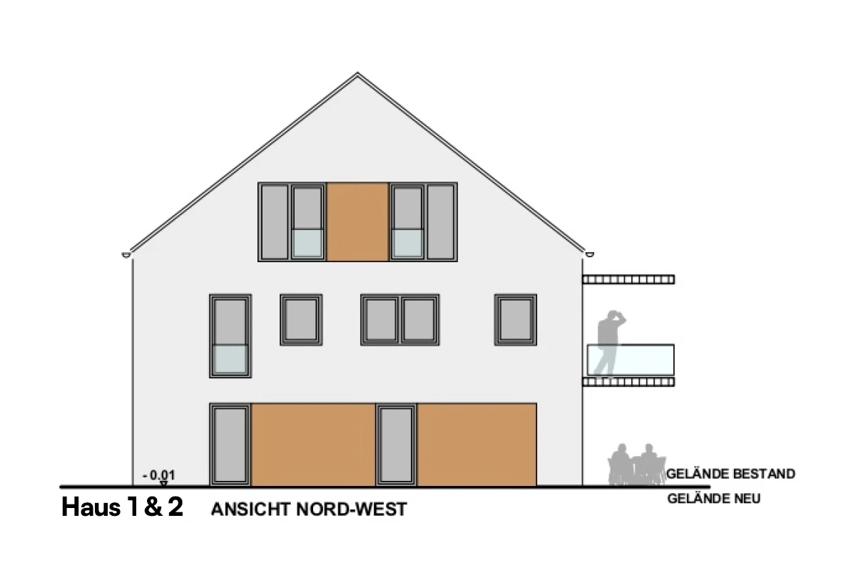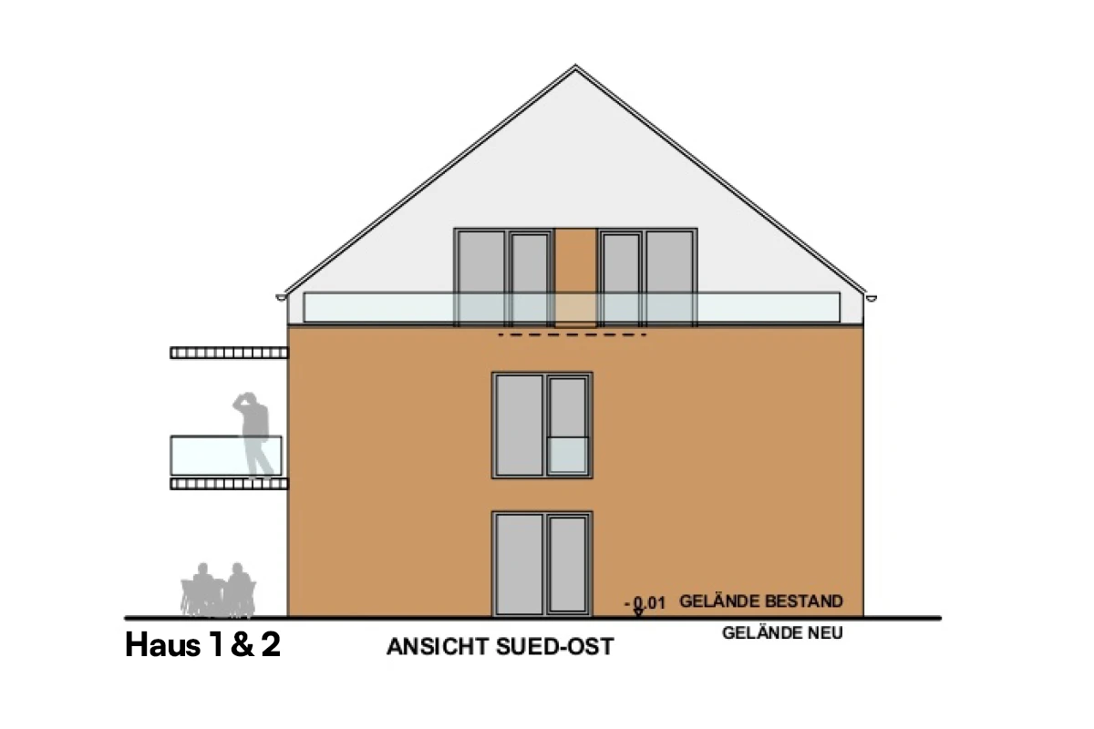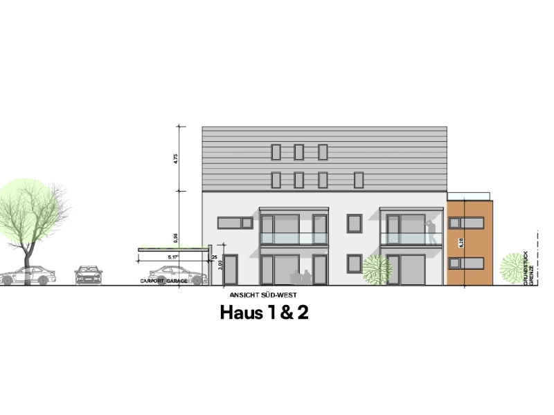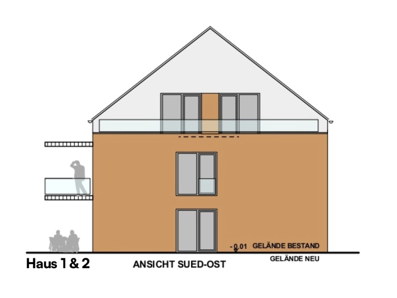 - Haus 1 beinhaltet 5 Wohneinheiten, verteilt auf drei Etagen