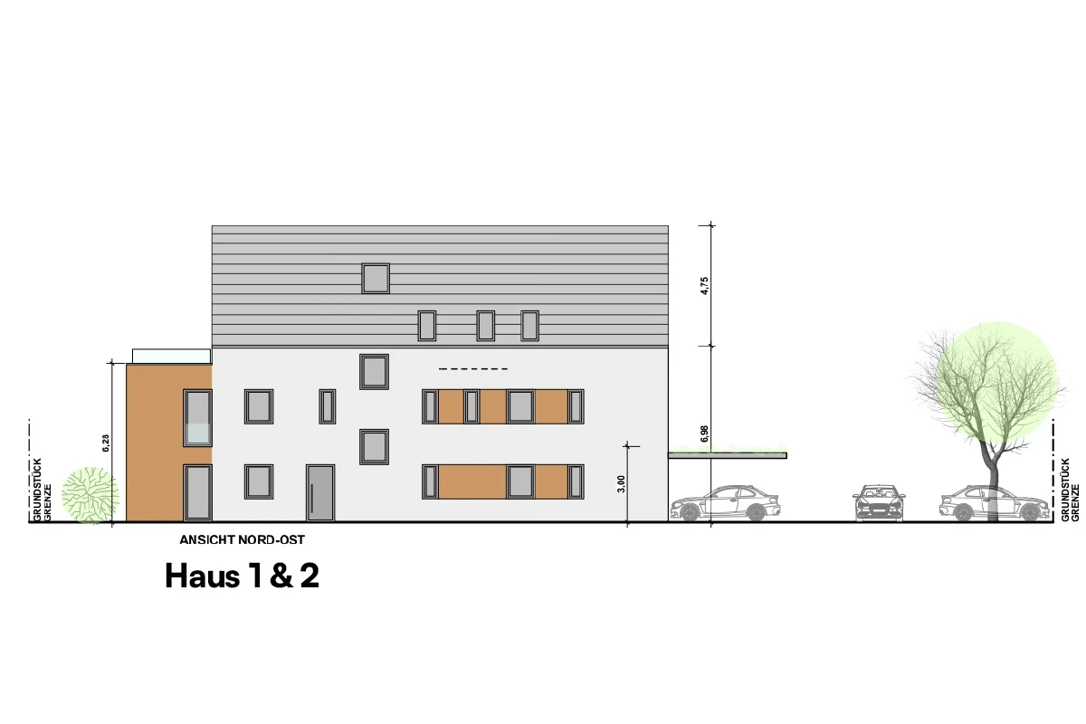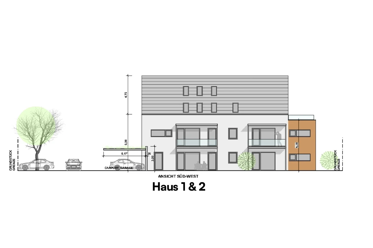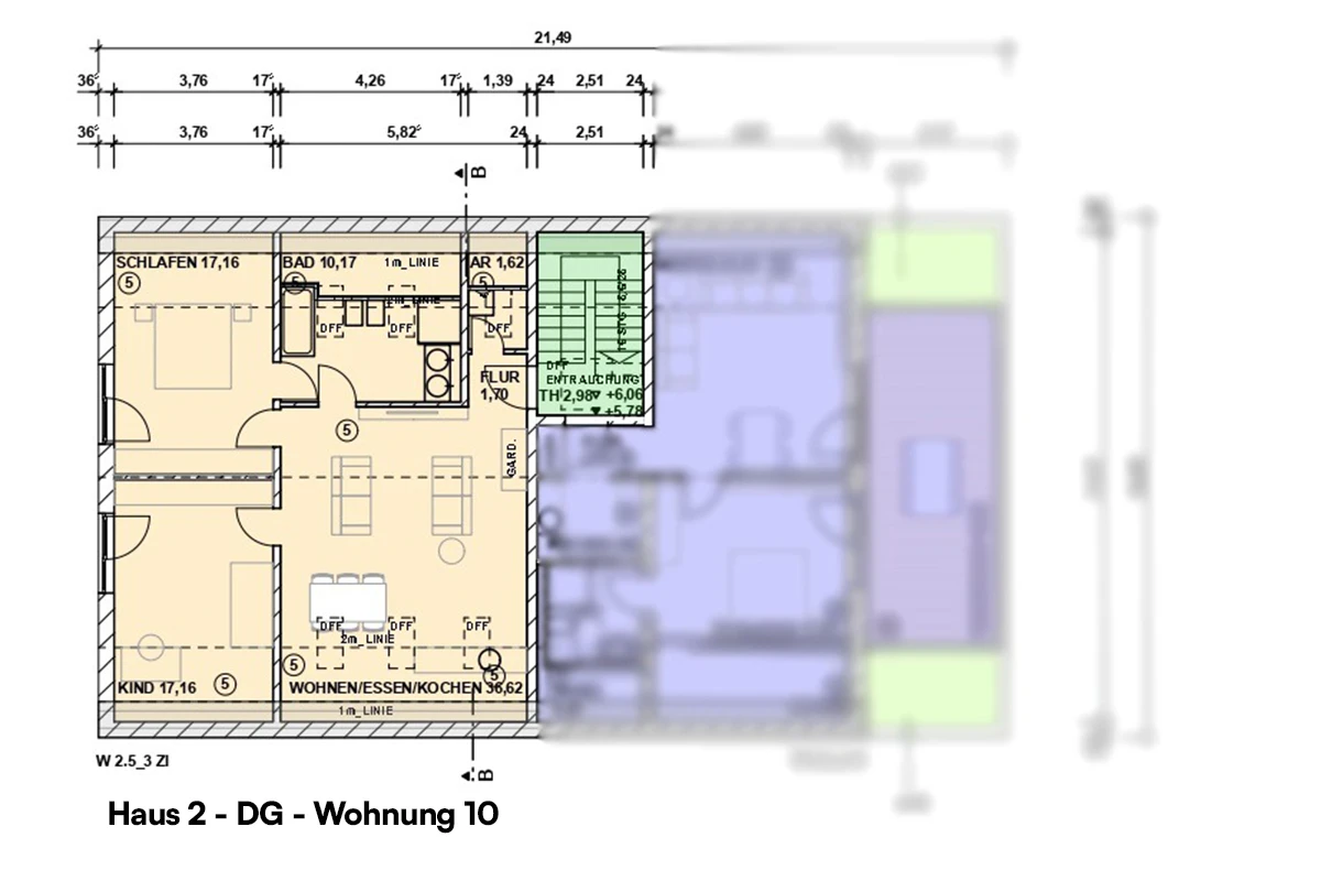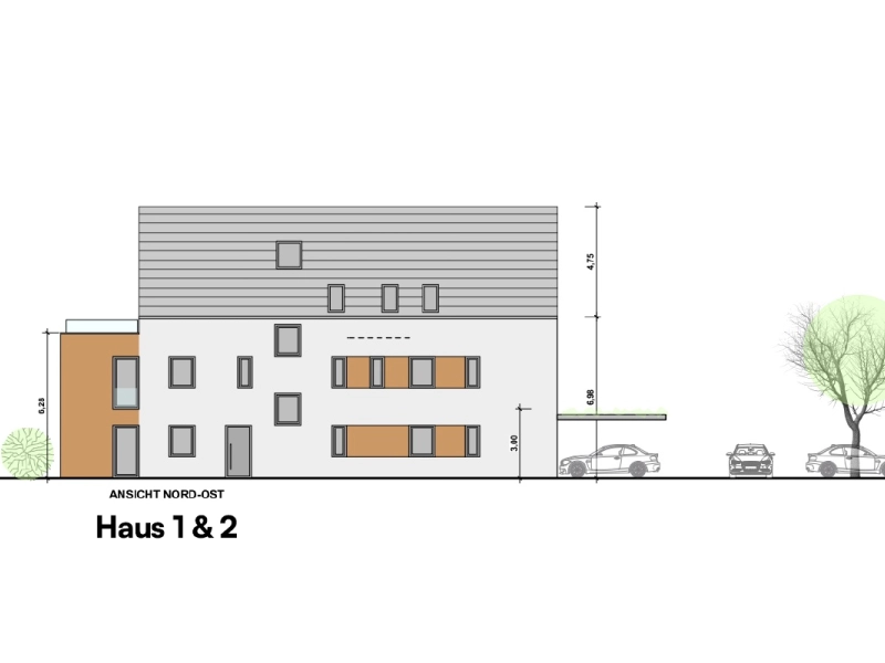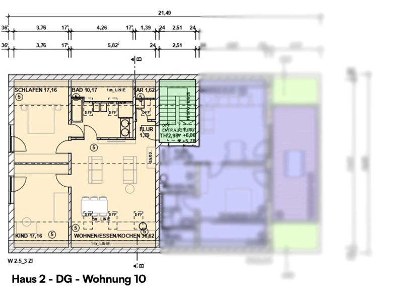 - Haus 2 beinhaltet 6 Wohneinheiten, verteilt auf drei Etagen