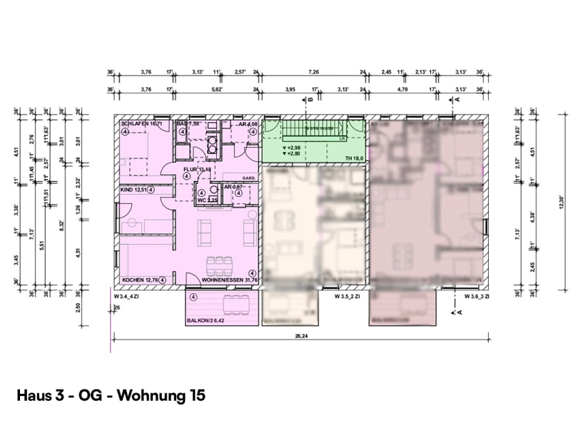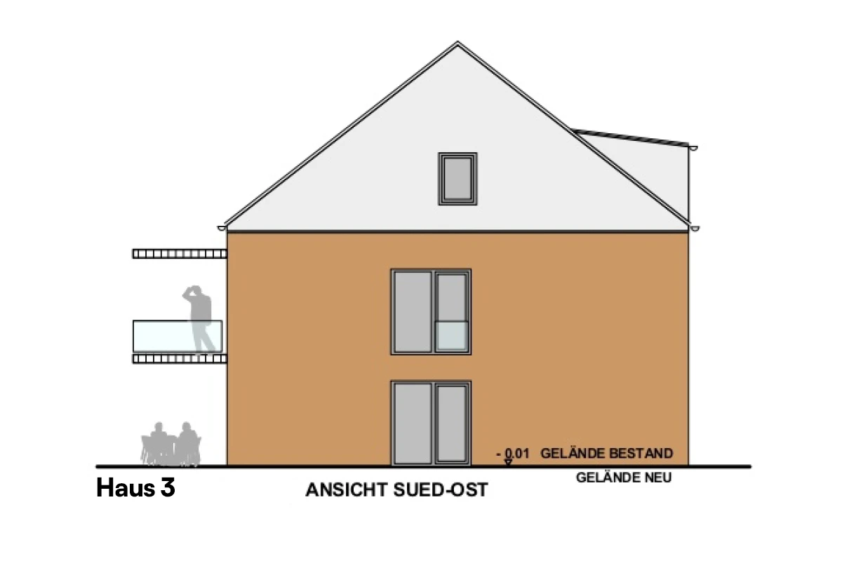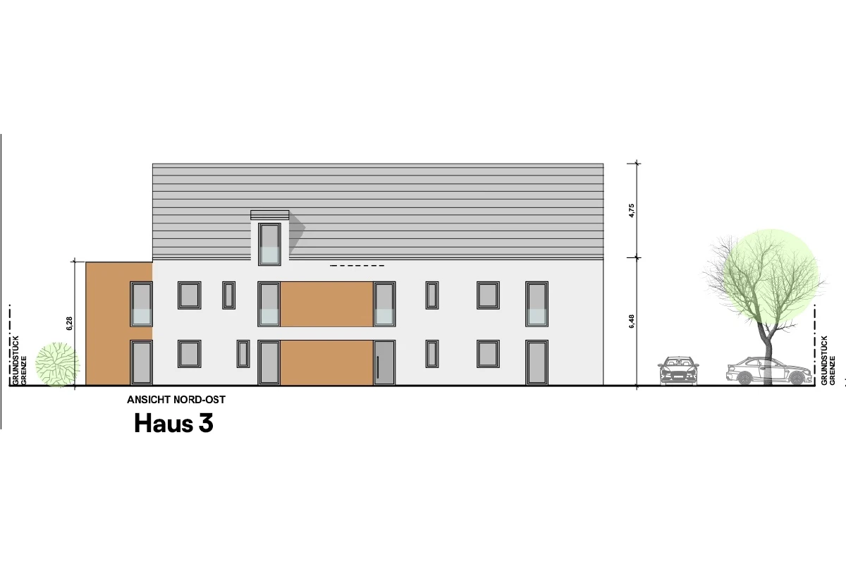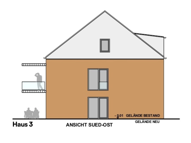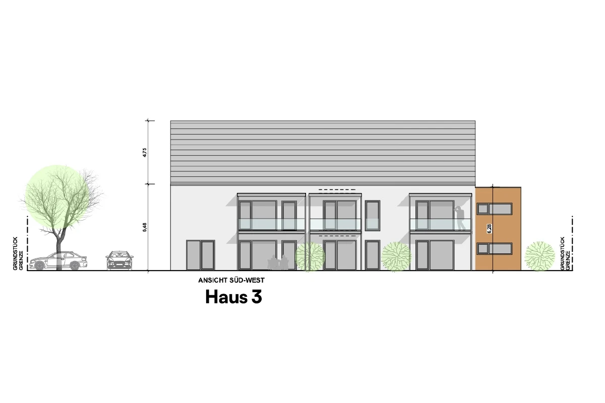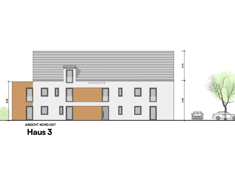 - Haus 3 beinhaltet 6 Wohneinheiten, verteilt auf drei Etagen