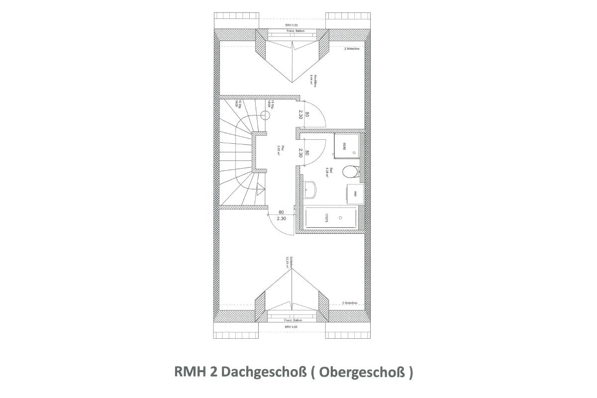 | RMH 2 | Grund: ca. 72 m² | Zuwege und Wegeanteil: ca. 60 m² | Grundtsücksanteil gesamt: ca. 132 m² | Wohnfläche: ca. 84 m² (5 Zimmer) | frei! | |
