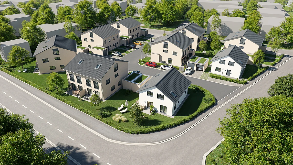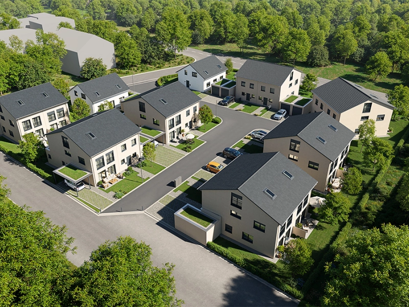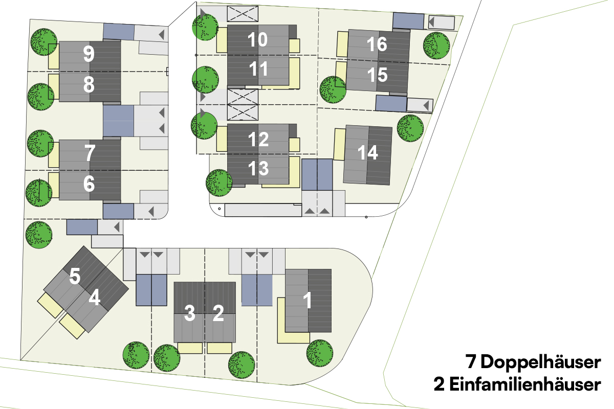 7 familienfreundliche Doppelhäuser und 2 schicke Einfamilienhäuser
