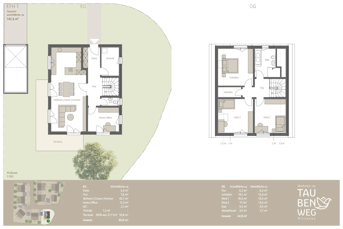 | EFH 1 | Wohnfläche: ca. 142,8 m² | Grundfläche: ca. 472 m² | frei! | |