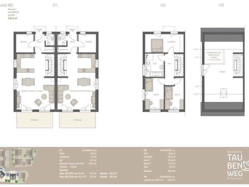 | DHH 4 | Wohnfläche: ca. 146,5 m² | Grundfläche: ca. 363 m² | frei! | |