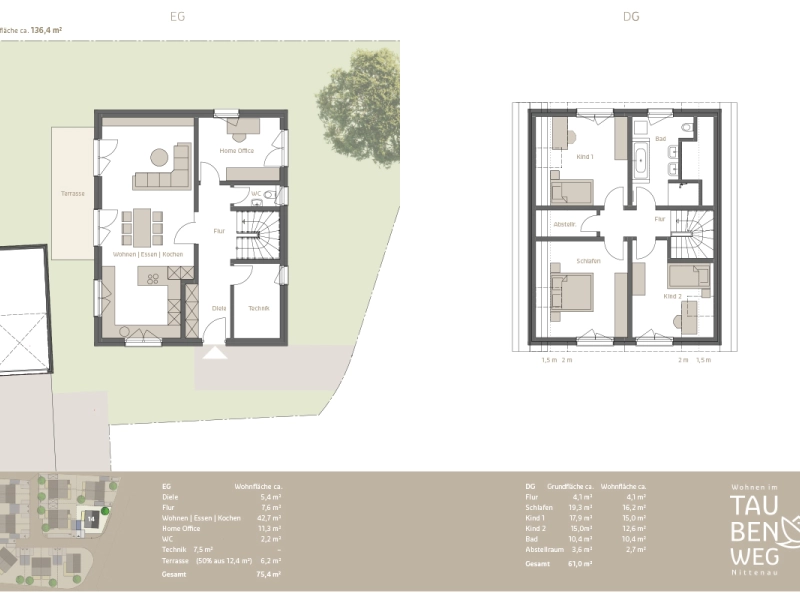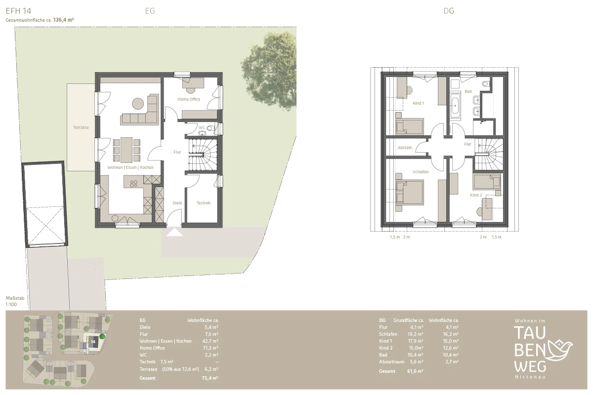 | EFH 14 | Wohnfläche: ca. 136,4 m² | Grundfläche: ca. 354 m² | frei! | |